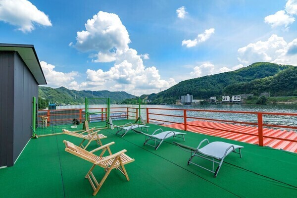리버빌 수상레저는 자체 운영 펜션이 있는데요. 리버뷰는 물론 깨끗하게 잘 관리된 객실 컨디션으로 인해 펜션 숙박만을 하는 사람들이 많을 정도로 인기입니다. 강 위에서 음식을 먹는 듯한 느낌을 주는 테라스 바베큐장은 20,000원이 추가됩니다.