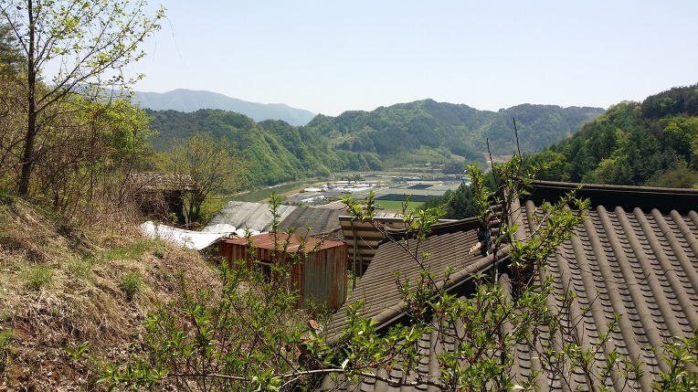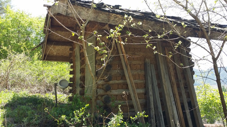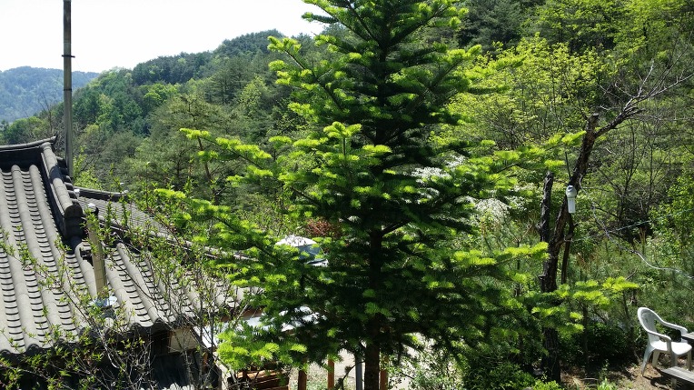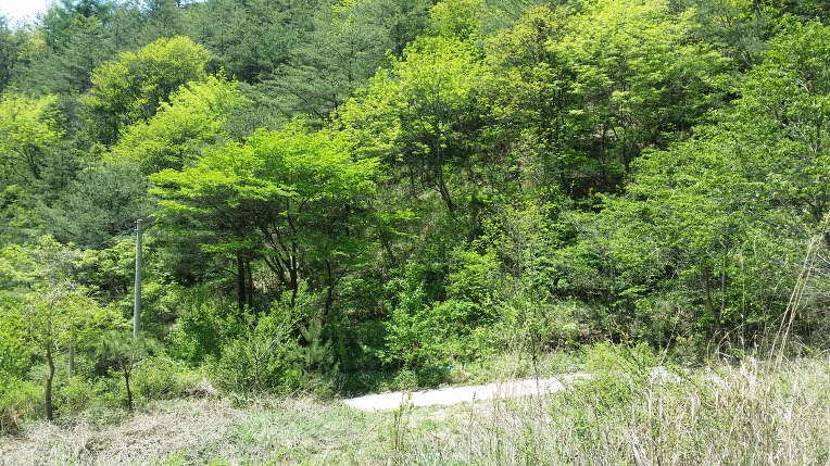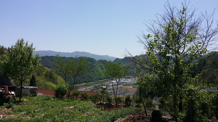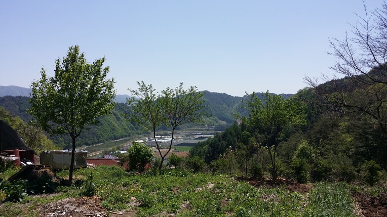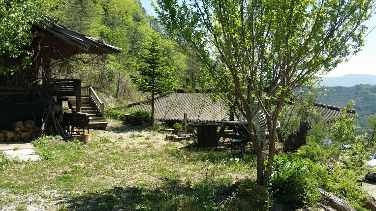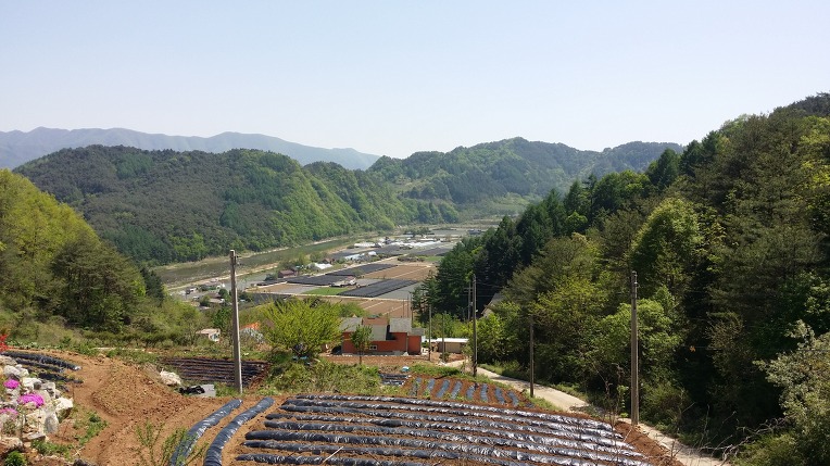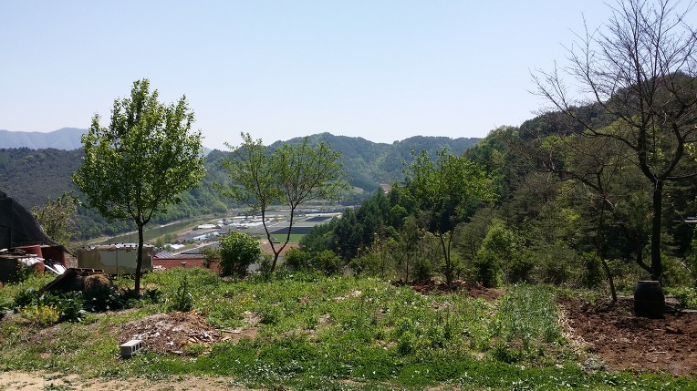 산밑에 멀리 보이는 전통 방식 야외 화장실(일명, 해우소) 가 보입니다