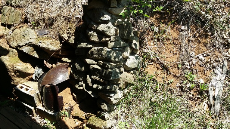 주위 돌로 만든 구들방 굴뚝 모습입니다