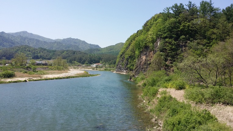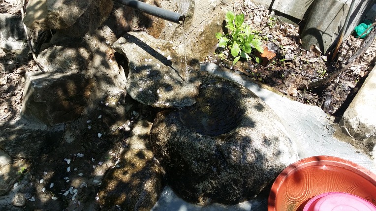 산속 샘물(겨울철에도 얼지않고 계속 흐름)는 장소는 약수터 분위기입니다