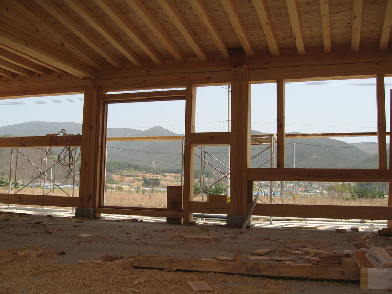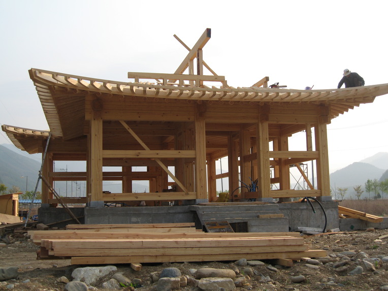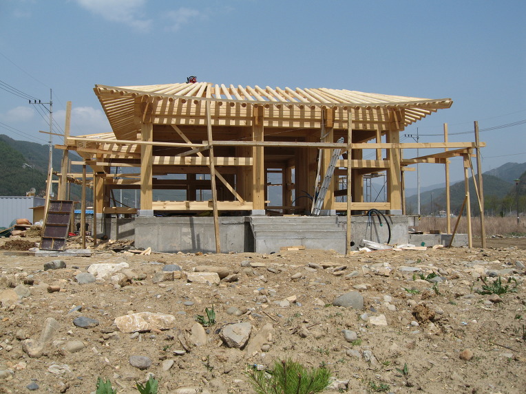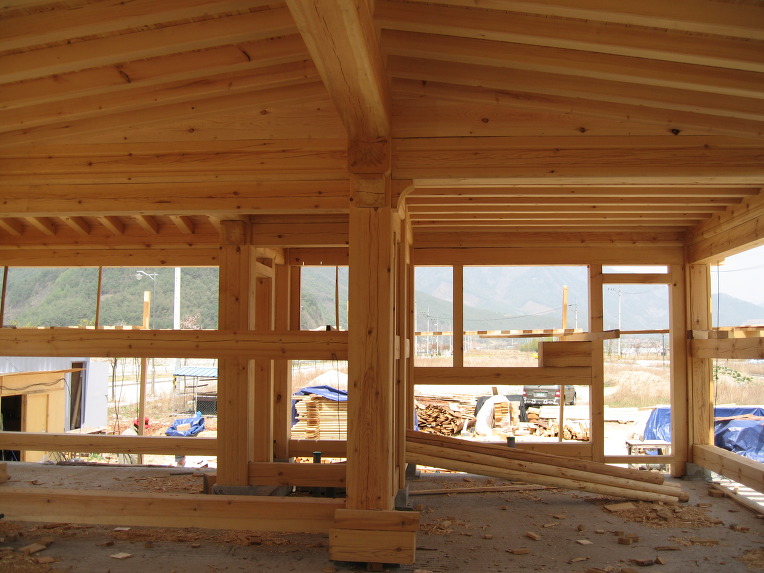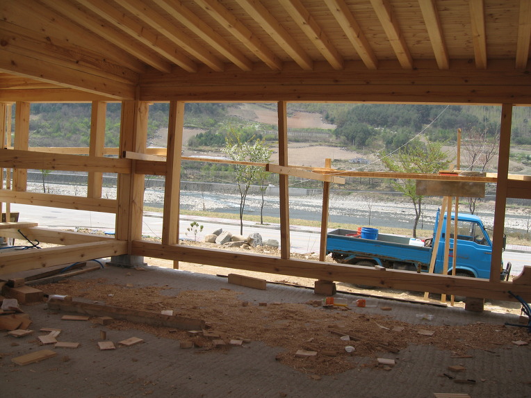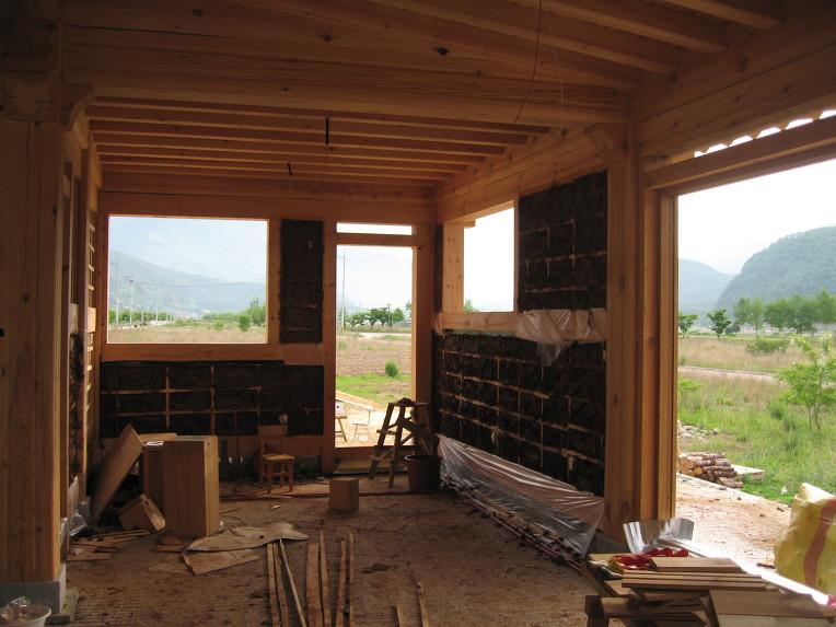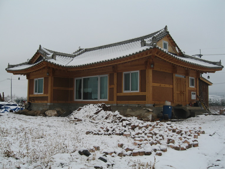 완공된 모습 입니다. 창문은 추위를 고려해 독일식 시스템 창문으로 했읍니다. 웃풍없고 따뜻한 겨울나기에 좋읍니다. 연탄 보일러로 하고....거실엔 벽난로로 연료비 절감하고... 거실,방 바닥재도 순수 황토로 만으로 시공했읍니다. 한옥 단점인 추위는 완전 해결했읍니다..... 강원산골의 한옥집짓기 전과정이였습니다. 자료 다음카페. (펌글) |