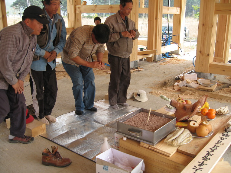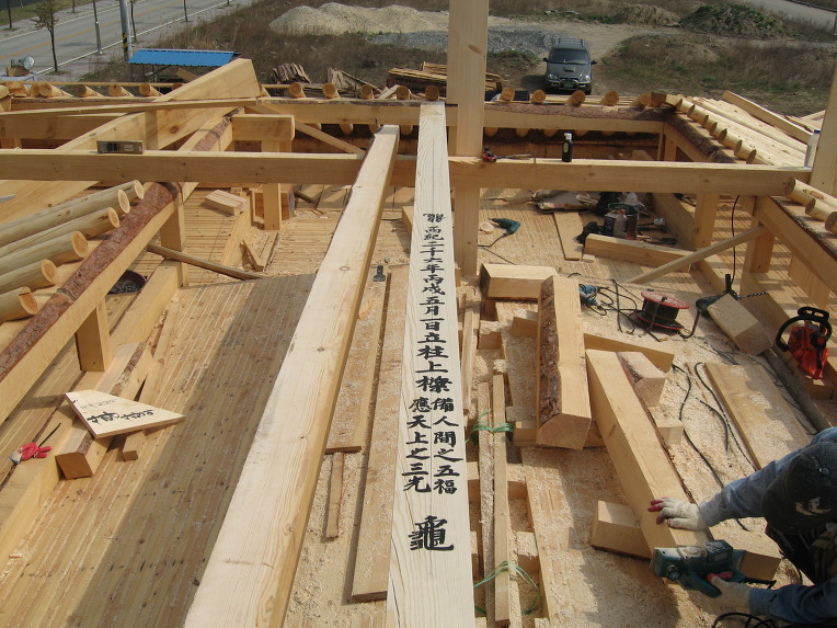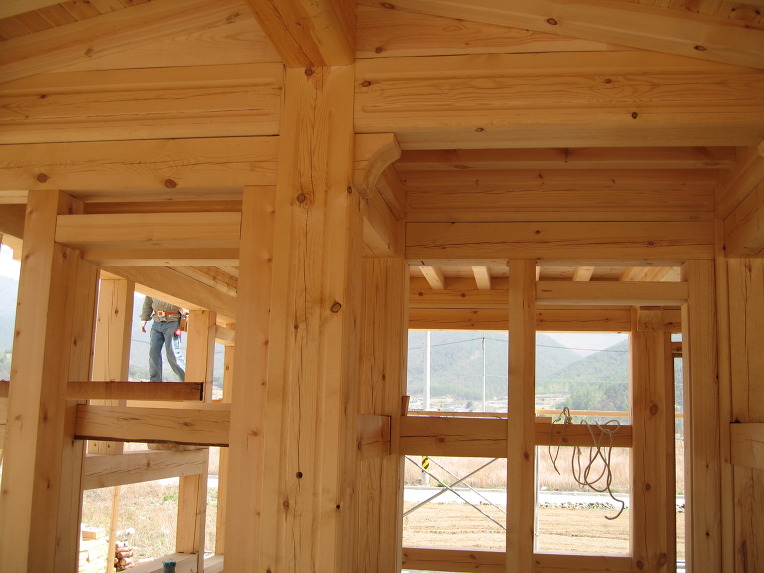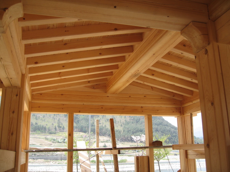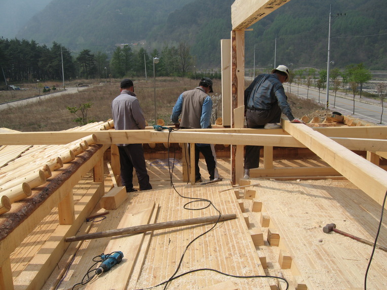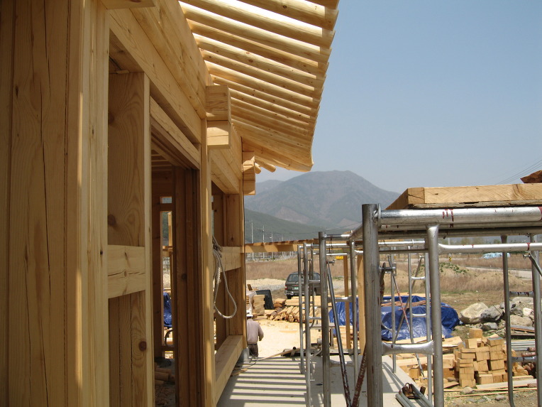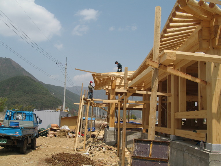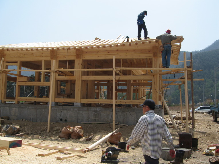 완공된 모습 입니다. 창문은 추위를 고려해 독일식 시스템 창문으로 했읍니다. 웃풍없고 따뜻한 겨울나기에 좋읍니다. 연탄 보일러로 하고....거실엔 벽난로로 연료비 절감하고... 거실,방 바닥재도 순수 황토로 만으로 시공했읍니다. 한옥 단점인 추위는 완전 해결했읍니다..... 강원산골의 한옥집짓기 전과정이였습니다. 자료 다음카페. (펌글) |