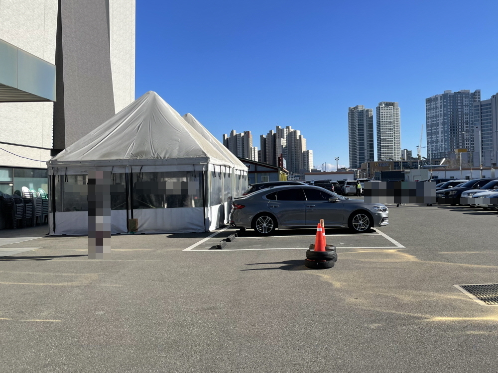 왼편에 보이는 천막이 대기 장소였다.