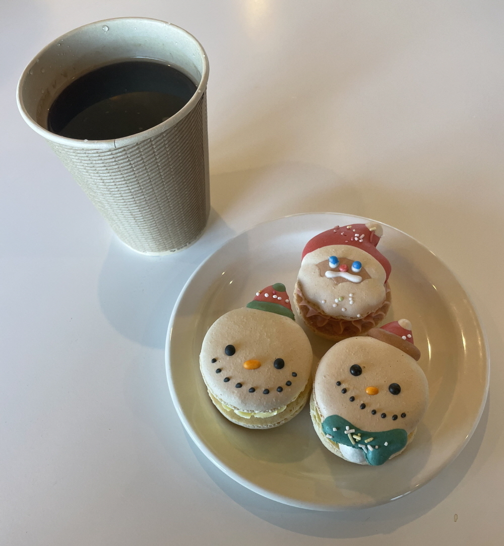 1층으로 내려와 몇 장의 사진을 찍고 카페로 들어가 커피와 마카롱을 주문했다.