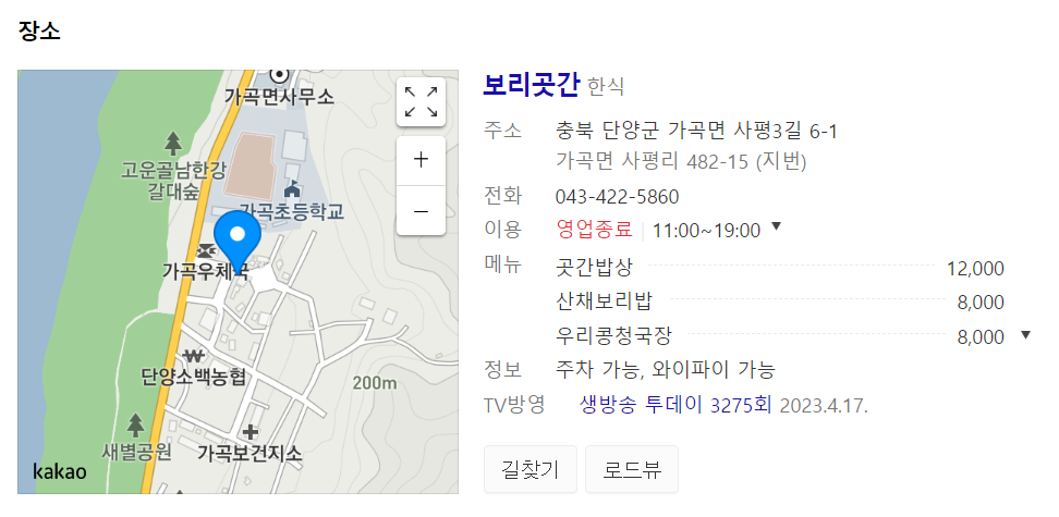 주소 : 충북 단양군 가곡면 사평3길 6-1